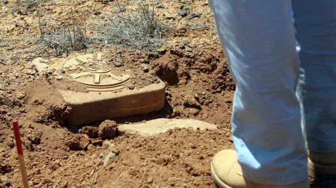 By embedding tiny tubes in the plants' leaves, they can be made to pick up chemicals called nitro-aromatics, which are found in land mines and other buried munitions.